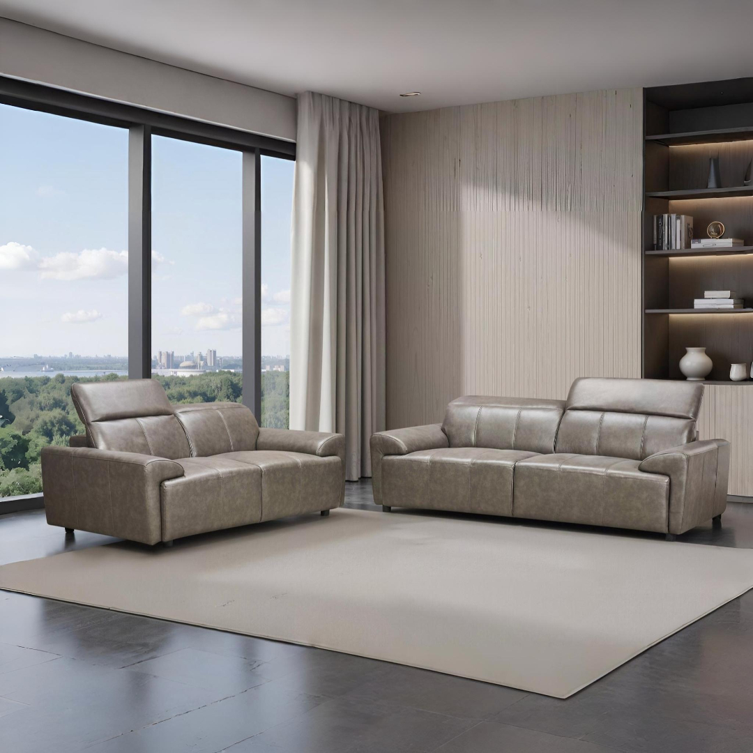 ABRIL Sofa Set Dark Grey Leather