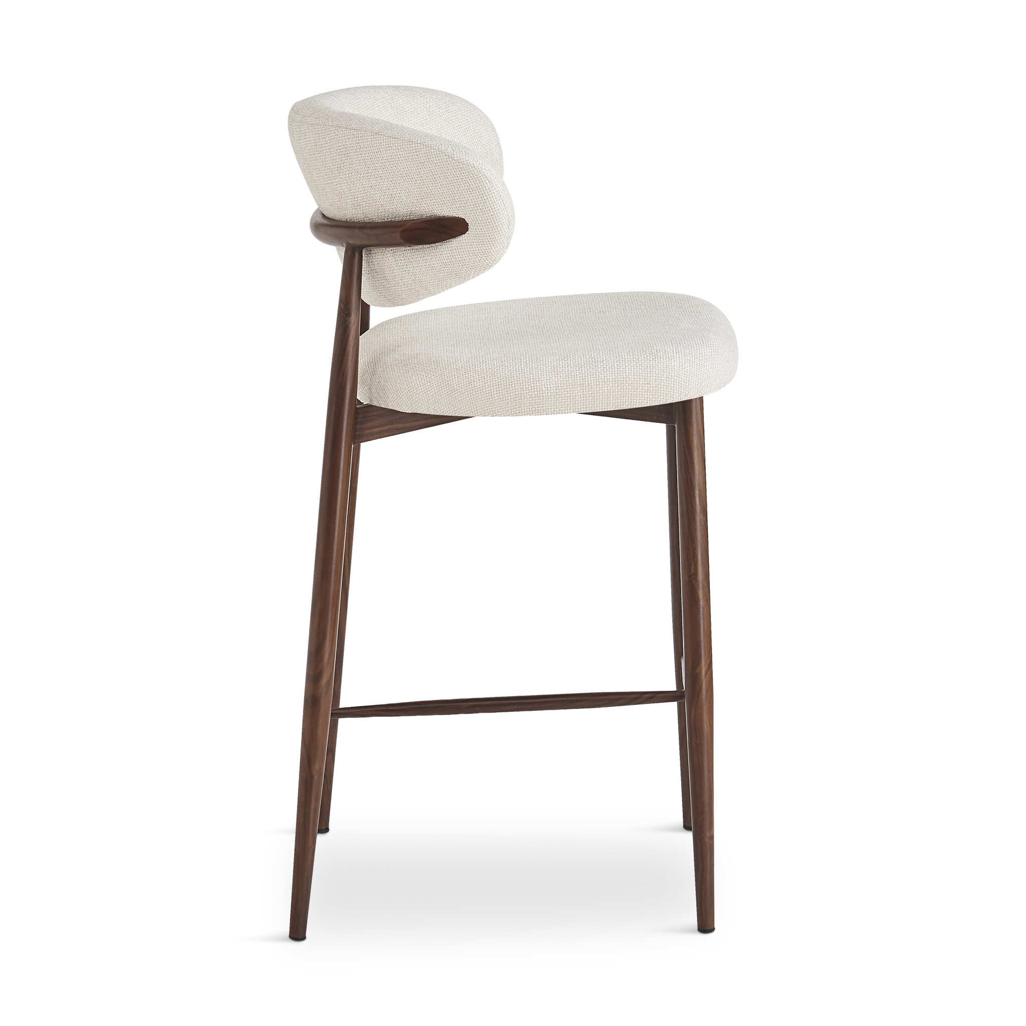 ARIALLE Beige Fabric Bar Stool with Walnut Legs